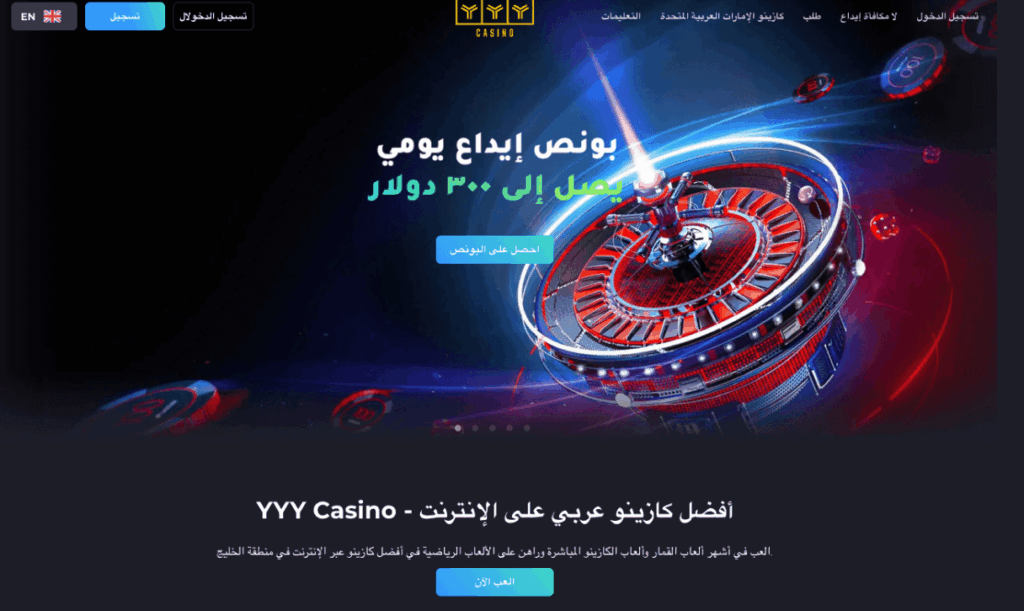 تأكد من الاطلاع على تقييمنا المخصص لكازينو YYY في المملكة العربية السعودية، حيث نستكشف بالتفصيل العلامة التجارية ومزاياها للاعبين العرب الذين يبحثون عن أفضل كازينو على الإنترنت في المملكة العربية السعودية.